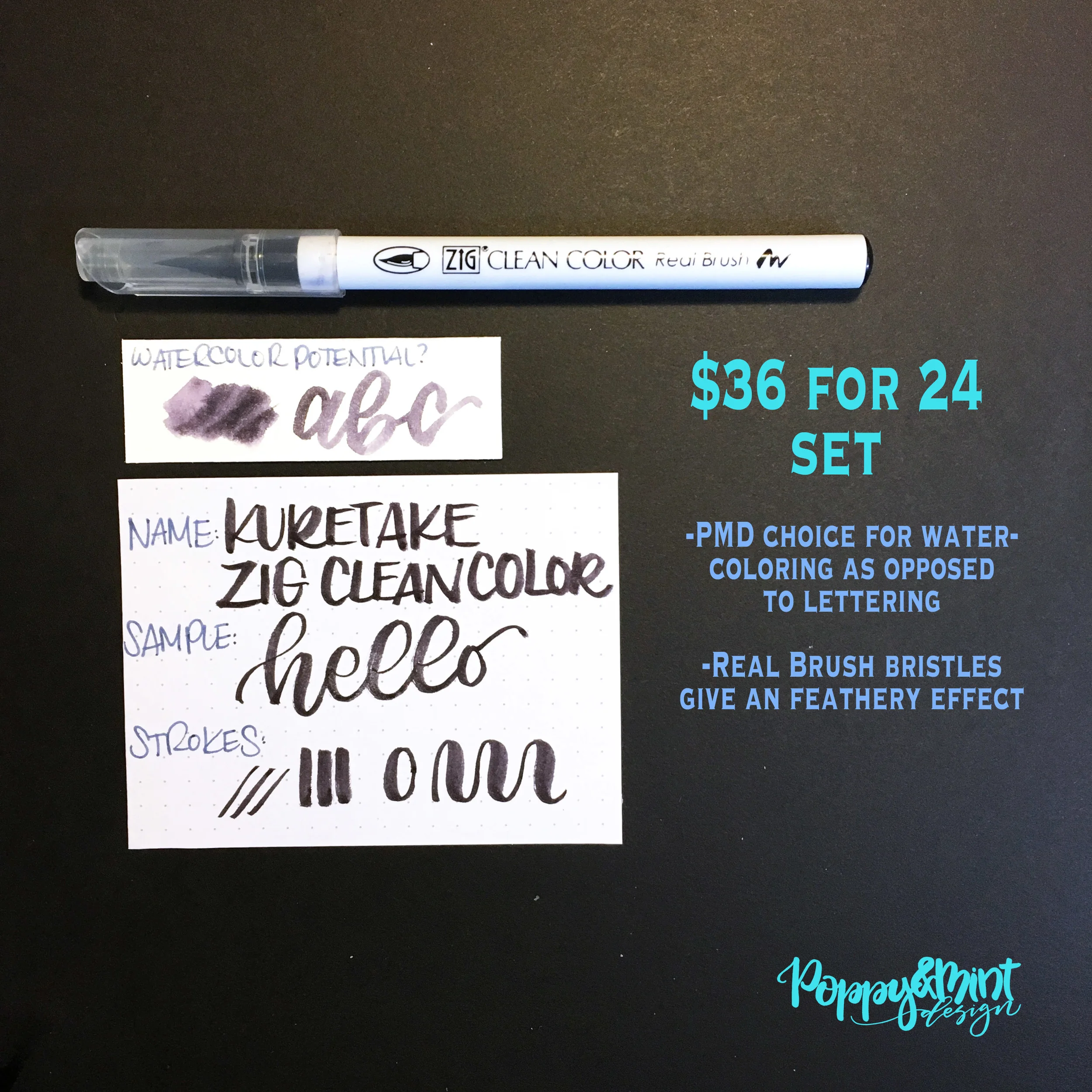 Watercolor lettering with them is great and they have beautiful color options. I've linked to the 24 set above but they have larger sets available too. I have the 24 and I think its sufficient because you can always blend colors together to make more! Whether you use a slick surface like the acrylic block in my video to pick up the pigment or you don't even use water and you blend the colors together with just the tips of the markers themselves, these are versatile for crafting and experimenting with color techniques in your work or hobby.