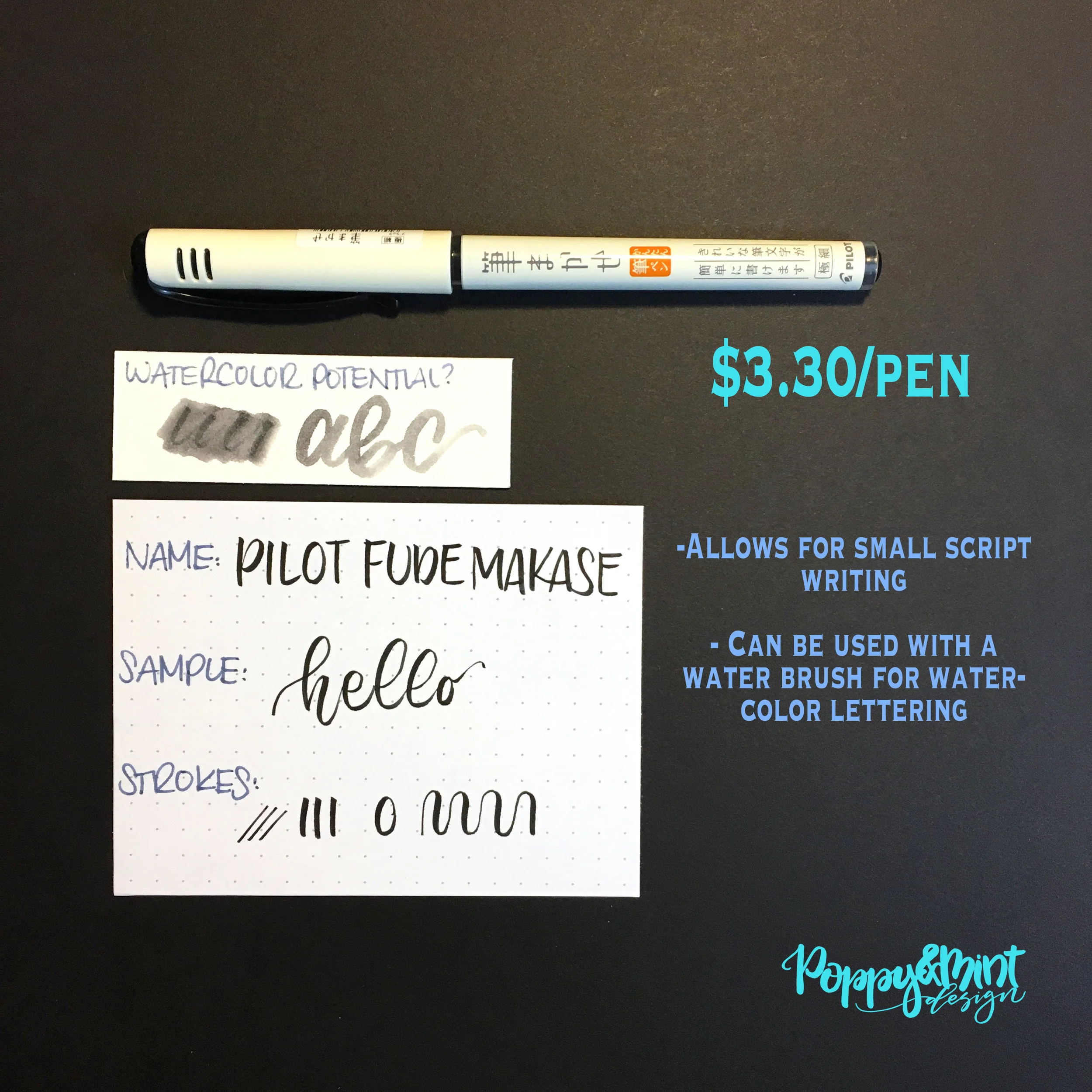 This particular pen is an "Extra Fine" tip and it is one of the first pens I picked out of the lineup on Jetpens.com when I first started. It's very forgiving of the heavy-handed, making it a good choice for the beginner who is looking for a pen they can use for smaller type size. The variation between thin and thick is that noticeable but you can still achieve enough of a difference to create the brush calligraphy effect.