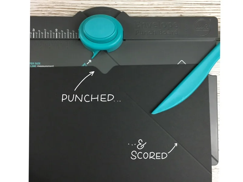 Once the punch is made, take the score stick (teal stick that is located within the board on the upper right corner) and score your cardstock from directly below the Punch Button, diagonal down and to the right along the Score Line. This will all be shown in the video tutorial so don't miss that YouTube link at the bottom of this post!